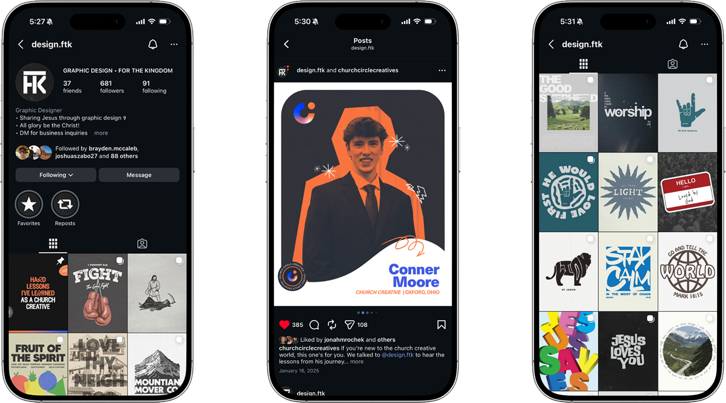 Design FTK — For The Kingdom — is a faith-based creative brand I built from the ground up to share original graphic designs that glorify God through art and apparel. What started as a personal challenge to grow my design skills quickly evolved into something larger: a recognizable brand with a real audience, a clothing line, and recognition from within the Christian creative community. Every piece of work created under Design FTK was driven by a clear purpose — to combine creativity with faith and share that with others.
